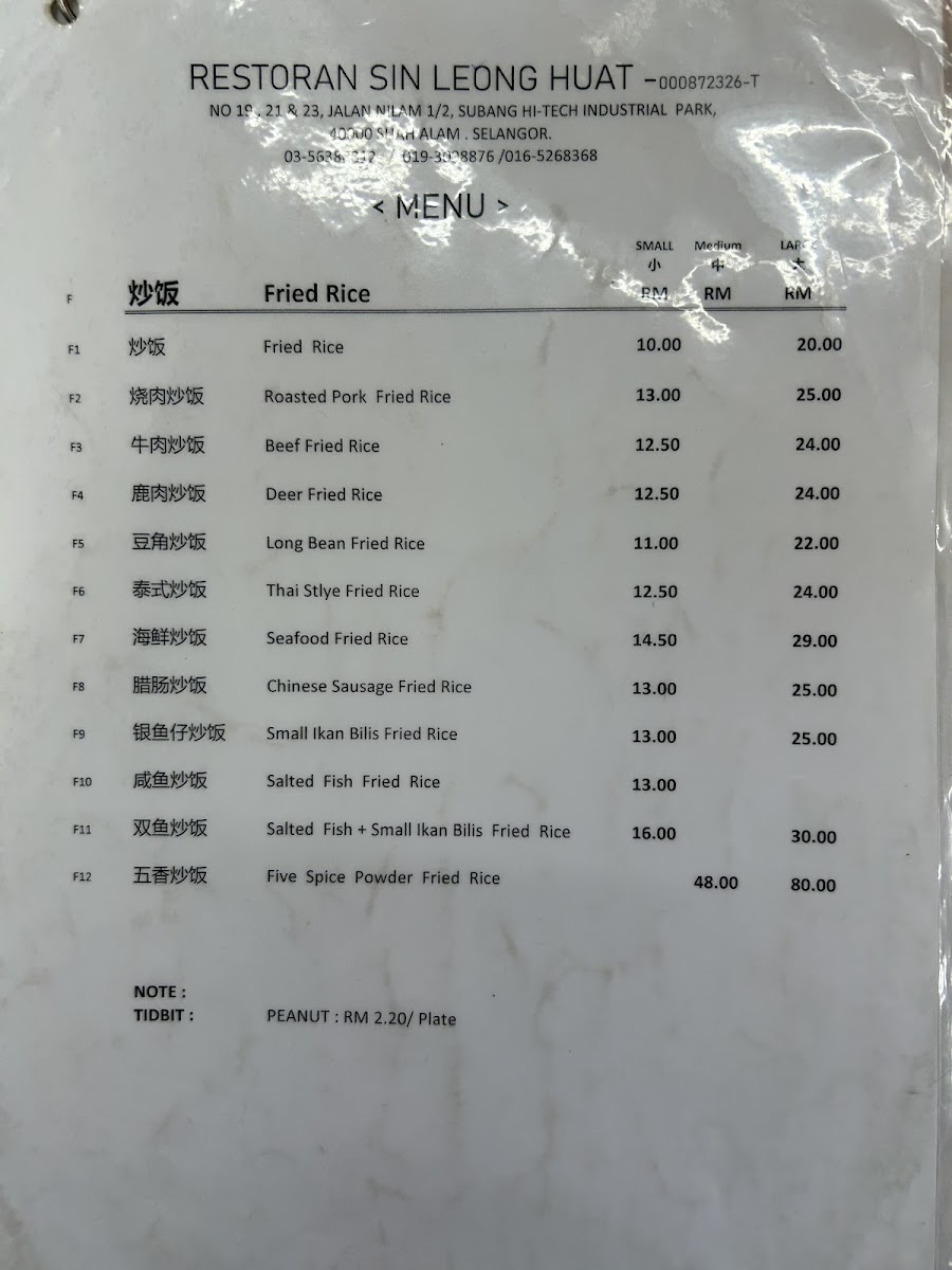 Introducing the menu at Restoran Sin Leong Huat, a beloved establishment nestled in Subang Jaya for over 15 years. This Chinese cuisine restaurant has carved a niche in the heart of the industrial Subang HiTech area, attracting diners with its impressive variety of dishes.